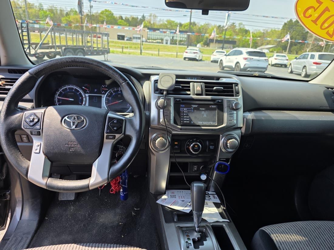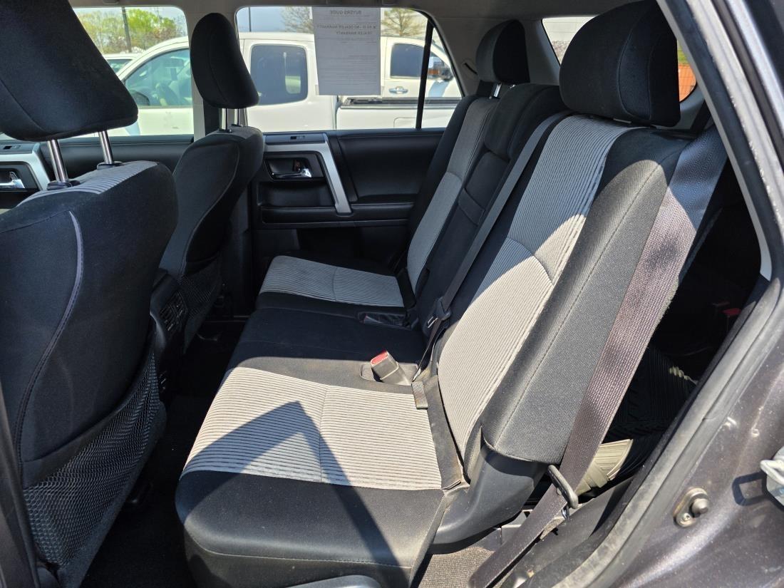 The 2015 Toyota 4Runner Base Grade is a rugged midsize SUV designed for both on-road comfort and off-road capability. It features a 4.0-liter V6 engine delivering 270 horsepower and a five-speed automatic transmission, providing ample power for various driving conditions. The vehicle offers a spacious interior, accommodating up to five passengers with ample cargo space. Its truck-based body-on-frame construction enhances durability, making it suitable for adventure enthusiasts. The 4Runner's standard features include a rearview camera, Bluetooth connectivity, and an 8-speaker sound system. While the interior design leans more towards utility rather than luxury, it's well-regarded for its reliability and strong resale value. Added off-road features, such as skid plates and available four-wheel drive, further enhance its appeal to those seeking outdoor escapades.